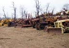 I thought I'd provide some background on my 1949 Cletrac BG tractor/dozer. I bought it in fall of 1995 from the original owner who lived in Avoca, NY, down in hills of the Southern Tier, off route 17. (For those who wonder what these might go for, I paid $2500 and felt it was well worth it in the well kept condition it was in.) He shared lots of advice on ownership and operation that he'd gained over the years. One truly unique experience for a "young guy" of 44 at the time was learning to hand crank a 6 cylinder Hercules. He taught me how to listen to the way she talks to you about how close she is to starting or not (and that you don't wrap your thumb around the handle - yikes!) Also, that in the winter, it's best to save that precious voltage in the battery for the coil and just crank start it. He walked me through routine maintenance that is needed, and watched over me while I replaced the old brake bands with a new set he had on hand ("tie a string to that wrench!"). A number of odds and ends came with it, including an Alemite dual stroke grease pump. I had her trucked the 100 miles to my home in Pavilion (at the time) and made my first of many contacts with Landis Zimmerman, that time in search of a winch for logging. I lucked out in that he had one on hand. He went through it, and shipped it up to me via truck freight. It weighed in at 1000 pounds and really squashed the front tires on the farm tractor we used to lift and install it with. The weight turns out to be an asset because the Cletrac, with the Heil blade sticking out front, is noticably nose heavy. The winch seems to move the center of gravity back nearer the middle of the tracks. I tweaked and played with it getting to know it for a month or so. It came with the mint original BIG diameter headlights for instance. I removed them for the eventual restoration because they would be the first thing to be damaged by low hanging branches in the woods. A new pair of 6V lights from Central Tractor replaced them along with a new flood at the rear. I found a trucker from my home town up in the foothills of the Adirondacks, Harrisville, NY, to come out and carry it up there for me. He had a number of inquiries on the CB on the way up from others wanting to know about it and if it was for sale. Luckily he didn't take anyone up on it - but he did make me promise to give him first shot if I ever want to get rid of it. I got some good video shots of it being loaded and unloaded that I'd like to put on a website someday. Speaking of loading and unloading. Looking back at the novice I was, I am truly lucky to be here today from the loading accidents I've read about since then. The lowboy the driver had was an old steel deck unit with steel ramps with steel cleats. To make it even slipperier, we'd had about 4" of wet snow the night before. I drove it on and off without incident, but looking back, the quick corrections I had to make as a green novice dozer operator were as much luck as anything.