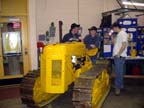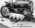 Taking a look at the rubber track model HGR "Cletrac" which has been out in the Kansas City territory on test, are Mr. A.W. Phelps, Mr. M.S. Tucker (seated on tractor) and Mr. Fred Cunningham.