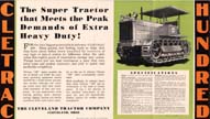 | Here's a Real Treat for you guys! Scanned from an original like-new Cletrac 100 brochure, generously donated to me to share with you all, these images can be viewed here in 72 dpi resolution, or downloaded as a 300 dpi pdf file that you can print and add to your collection. If you need Adobe Acrobat reader (free), you can download it here. |